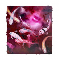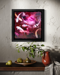 Bring a sense of fluid serenity and vibrant energy to your space with this stunning contemporary koi study. This piece captures a dynamic group of koi fish navigating through a dreamlike, atmospheric expanse of deep magentas and soft cherry blossom pinks.The artwork balances the traditional symbolism of the koi—perseverance, luck, and abundance—with a modern, expressive painterly style. Each fish is rendered with delicate dappled patterns, appearing to glide effortlessly through a swirling "water-scape" that feels both cosmic and organic.