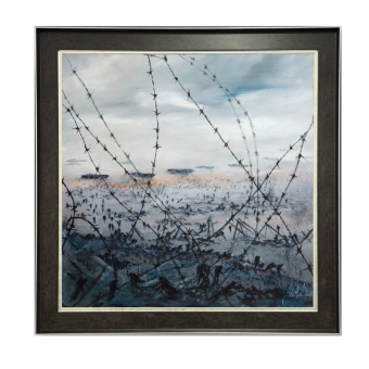 Part of the acclaimed STAND exhibition, this limited edition print powerfully captures the intensity and sacrifice of D-Day, depicting soldiers advancing through barbed wire beneath the shadow of conflict. Each print is hand-embellished, adding texture, depth, and a unique personal character, and is beautifully framed, making it a true collectible work of art. This striking piece invites reflection on the courage and determination of those who took part in one of the most pivotal moments of the Second World War.