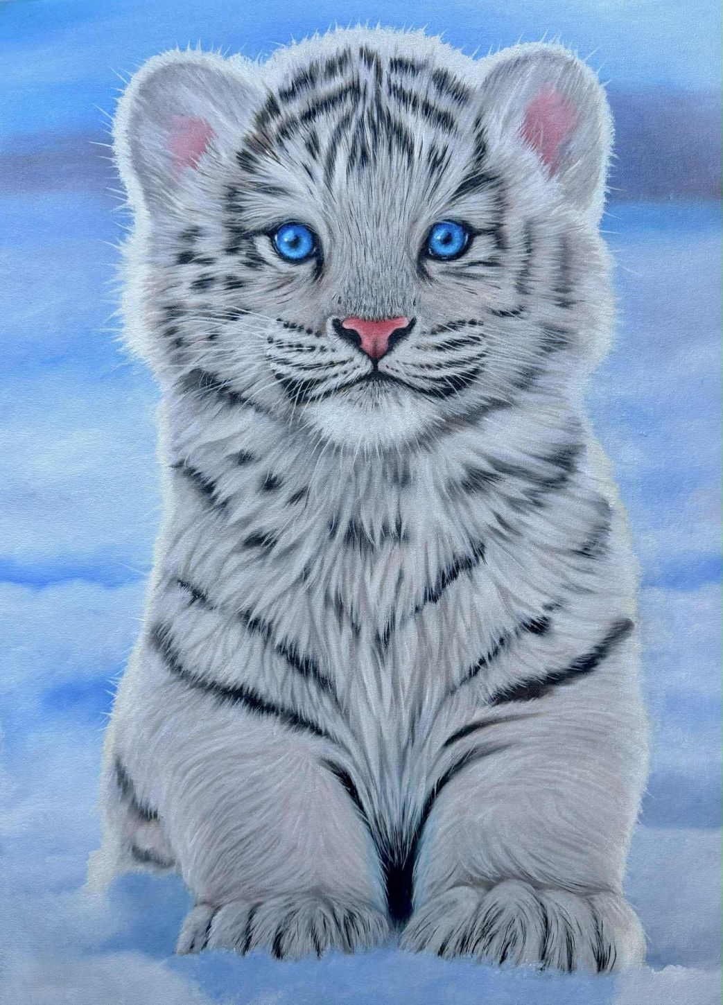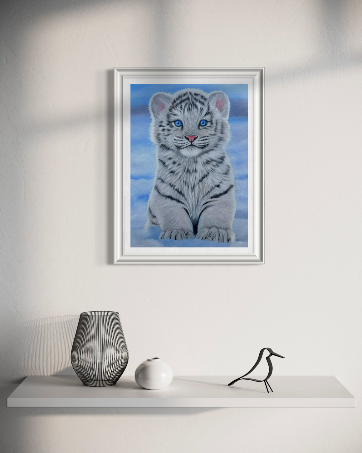 Meet Eyes of Blue, the irresistibly adorable White Tiger Cub captured in this limited edition print. With its striking blue eyes and delicate features, this artwork brings the charm and wonder of wildlife into your home. Printed on high-quality archival paper, each piece preserves every detail and color of the original, making it a perfect gift or collector’s item for wildlife enthusiasts.